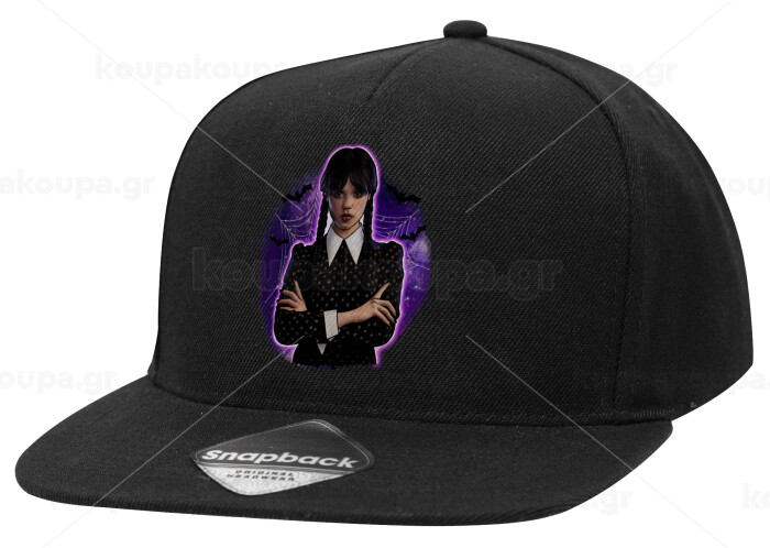 Wednesday moonlight, Adult Flat Snapback Hat Black, (100% COTTON TWILL, ADULT, UNISEX, ONE SIZE)