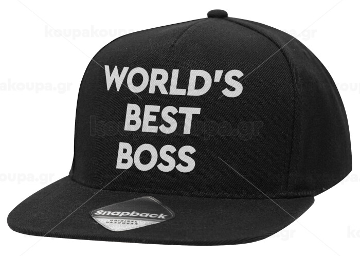 World's best boss, Adult Flat Snapback Hat Black, (100% COTTON TWILL, ADULT, UNISEX, ONE SIZE)