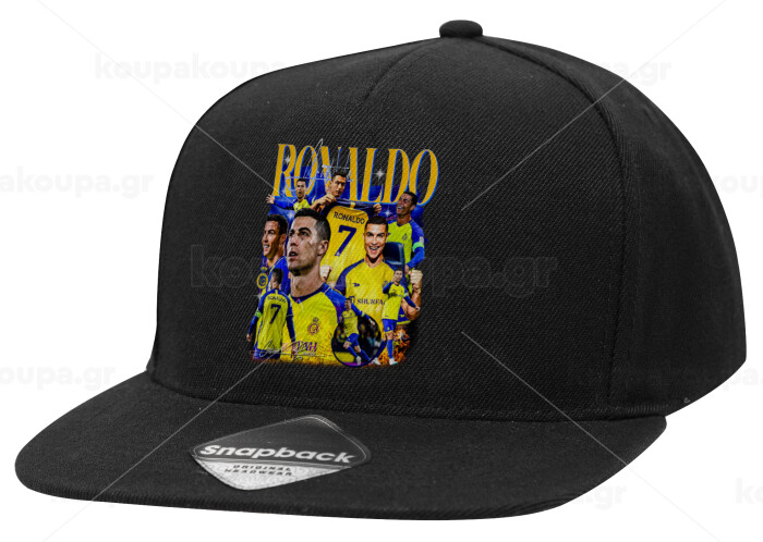 Cristiano Ronaldo Al Nassr, Adult Flat Snapback Hat Black, (100% COTTON TWILL, ADULT, UNISEX, ONE SIZE)