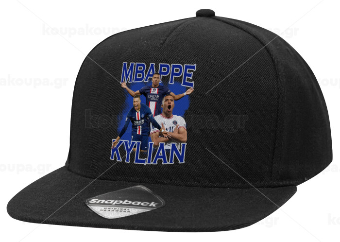 Kylian Mbappé, Adult Flat Snapback Hat Black, (100% COTTON TWILL, ADULT, UNISEX, ONE SIZE)