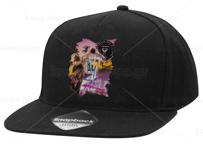 Lionel Messi Miami, Adult Flat Snapback Hat Black, (100% COTTON TWILL, ADULT, UNISEX, ONE SIZE)