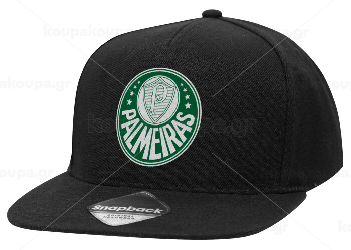 Palmeiras, Adult Flat Snapback Hat Black, (100% COTTON TWILL, ADULT, UNISEX, ONE SIZE)