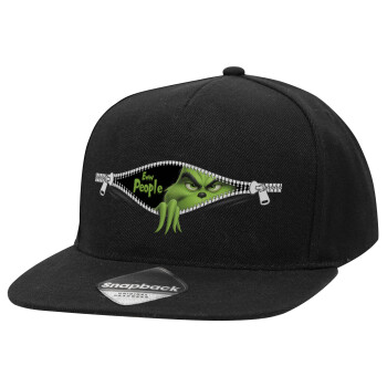 Grinch, eww people, Adult Flat Snapback Hat Black, (100% COTTON TWILL, ADULT, UNISEX, ONE SIZE)