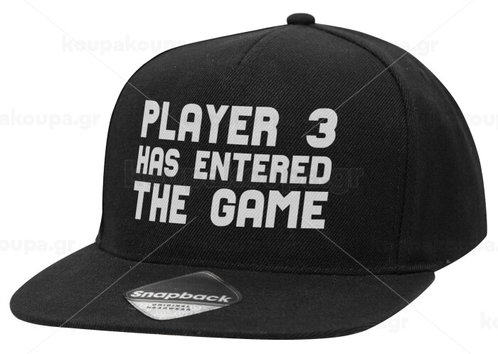Player 3 has entered the Game, Adult Flat Snapback Hat Black, (100% COTTON TWILL, ADULT, UNISEX, ONE SIZE)