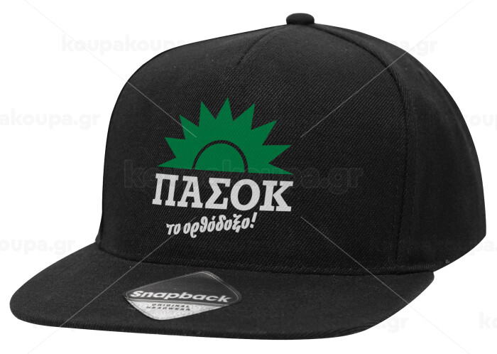 PASOK the orthodoxo, Adult Flat Snapback Hat Black, (100% COTTON TWILL, ADULT, UNISEX, ONE SIZE)