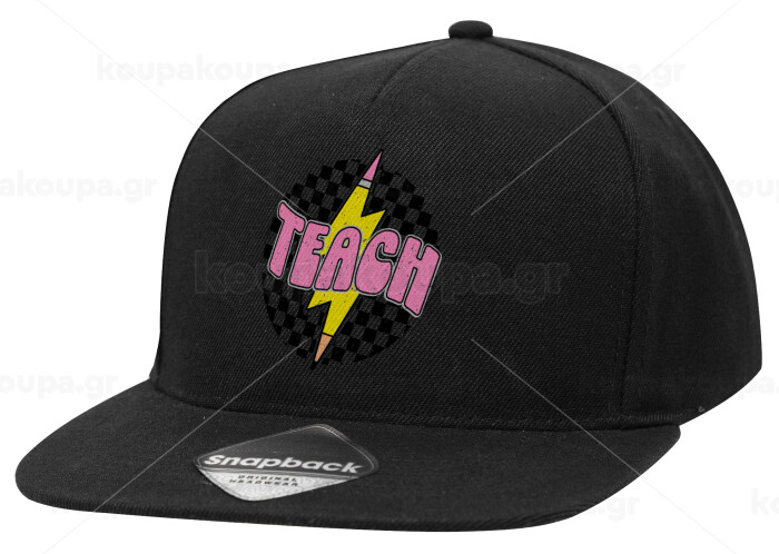 Teach, Adult Flat Snapback Hat Black, (100% COTTON TWILL, ADULT, UNISEX, ONE SIZE)