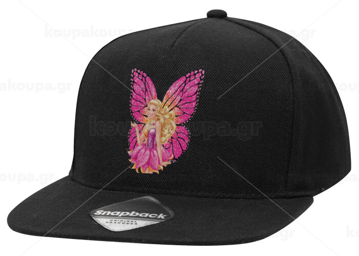 A fairy Barbie, Adult Flat Snapback Hat Black, (100% COTTON TWILL, ADULT, UNISEX, ONE SIZE)