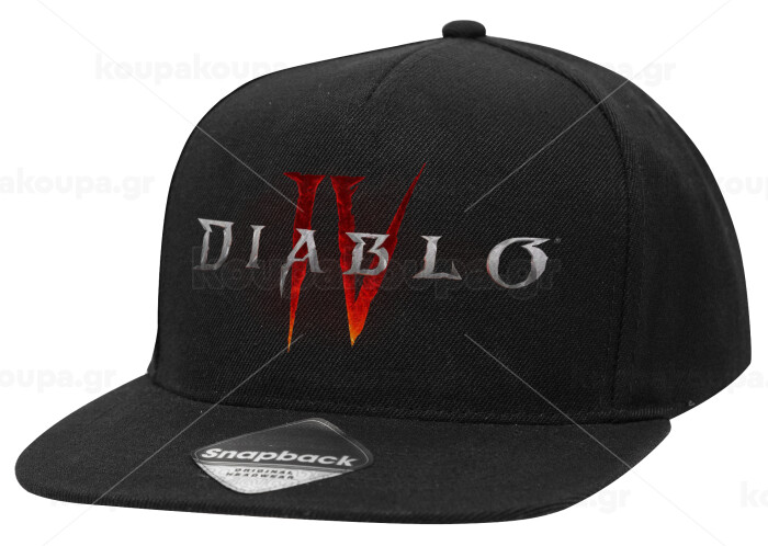 Diablo iv, Adult Flat Snapback Hat Black, (100% COTTON TWILL, ADULT, UNISEX, ONE SIZE)
