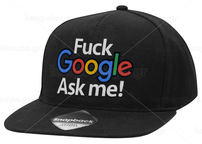 Fuck Google, Ask me!, Adult Flat Snapback Hat Black, (100% COTTON TWILL, ADULT, UNISEX, ONE SIZE)