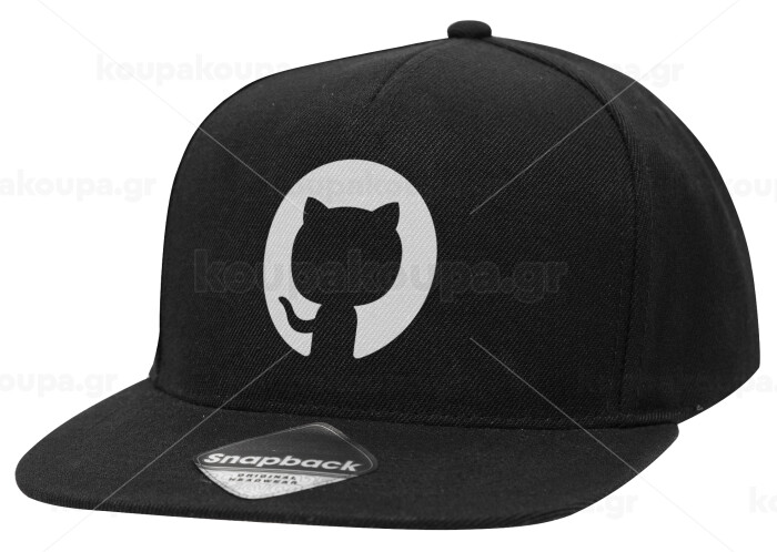 GitHub, Adult Flat Snapback Hat Black, (100% COTTON TWILL, ADULT, UNISEX, ONE SIZE)