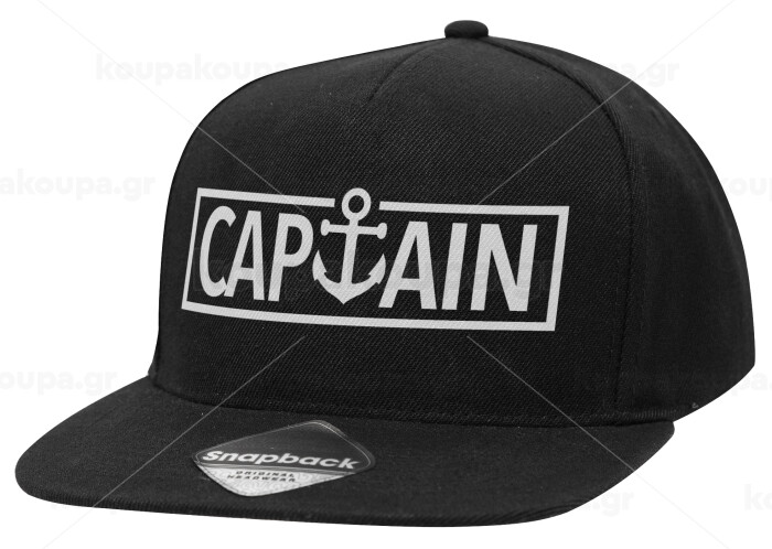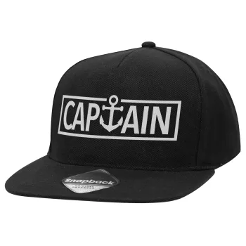 CAPTAIN, Adult Flat Snapback Hat Black, (100% COTTON TWILL, ADULT, UNISEX, ONE SIZE)