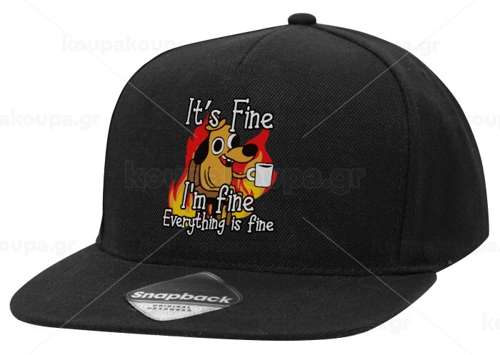 It's Fine I'm Fine Everything Is Fine, Adult Flat Snapback Hat Black, (100% COTTON TWILL, ADULT, UNISEX, ONE SIZE)