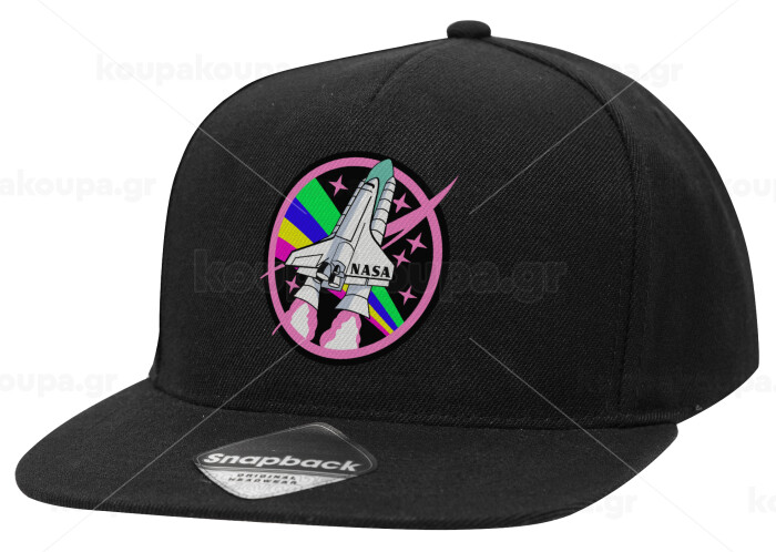 NASA pink, Adult Flat Snapback Hat Black, (100% COTTON TWILL, ADULT, UNISEX, ONE SIZE)