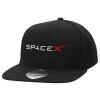 Space X, Adult Flat Snapback Hat Black, (100% COTTON TWILL, ADULT, UNISEX, ONE SIZE)
