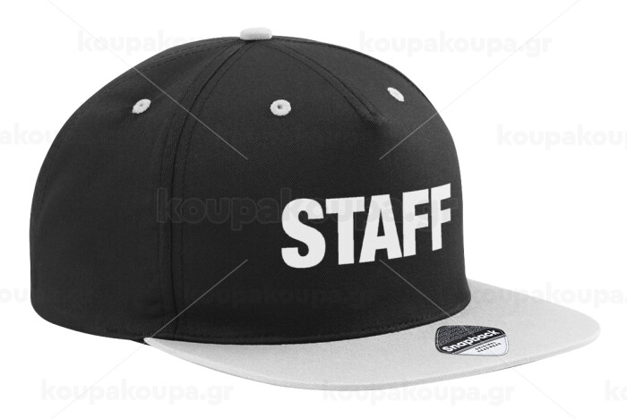 Staff, Adult Flat Snapback Hat Black/Grey, (100% COTTON TWILL, ADULT, UNISEX, ONE SIZE)