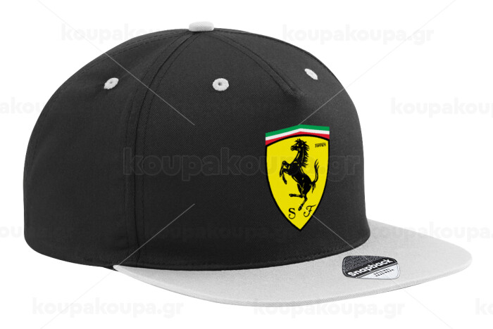 Ferrari, Adult Flat Snapback Hat Black/Grey, (100% COTTON TWILL, ADULT, UNISEX, ONE SIZE)