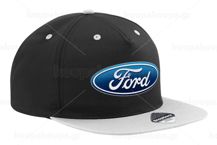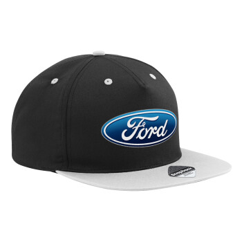 Ford, Adult Flat Snapback Hat Black/Grey, (100% COTTON TWILL, ADULT, UNISEX, ONE SIZE)