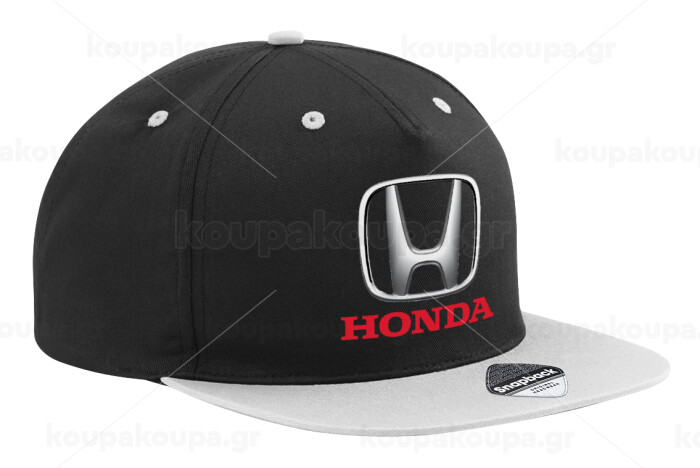 HONDA, Adult Flat Snapback Hat Black/Grey, (100% COTTON TWILL, ADULT, UNISEX, ONE SIZE)