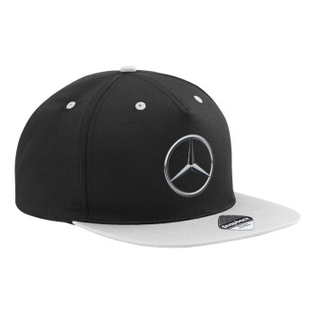 mercedes, Adult Flat Snapback Hat Black/Grey, (100% COTTON TWILL, ADULT, UNISEX, ONE SIZE)