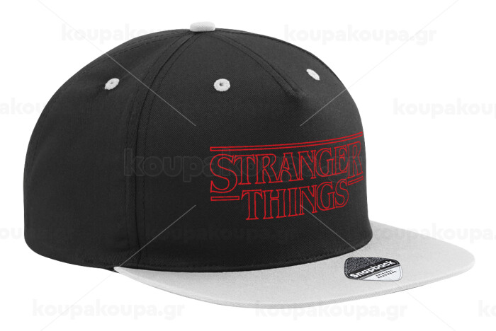 Stranger Things Logo, Adult Flat Snapback Hat Black/Grey, (100% COTTON TWILL, ADULT, UNISEX, ONE SIZE)