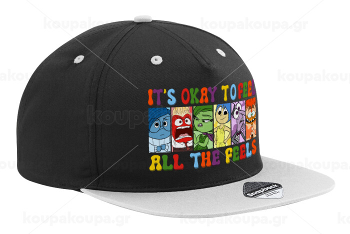 Inside Out It's Okay To Feel All The Feels , Adult Flat Snapback Hat Black/Grey, (100% COTTON TWILL, ADULT, UNISEX, ONE SIZE)
