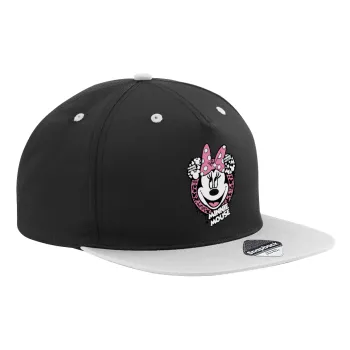 Minnie mouse, Adult Flat Snapback Hat Black/Grey, (100% COTTON TWILL, ADULT, UNISEX, ONE SIZE)