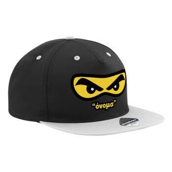 Ninja Eyes με όνομα, Adult Flat Snapback Hat Black/Grey, (100% COTTON TWILL, ADULT, UNISEX, ONE SIZE)