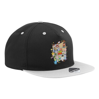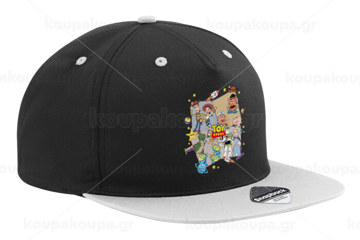 toystory characters, Adult Flat Snapback Hat Black/Grey, (100% COTTON TWILL, ADULT, UNISEX, ONE SIZE)