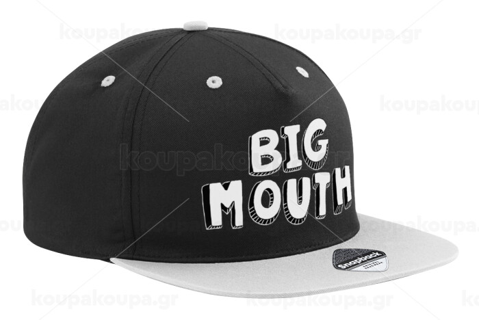 Big mouth, Adult Flat Snapback Hat Black/Grey, (100% COTTON TWILL, ADULT, UNISEX, ONE SIZE)