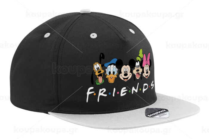 Friends characters, Adult Flat Snapback Hat Black/Grey, (100% COTTON TWILL, ADULT, UNISEX, ONE SIZE)
