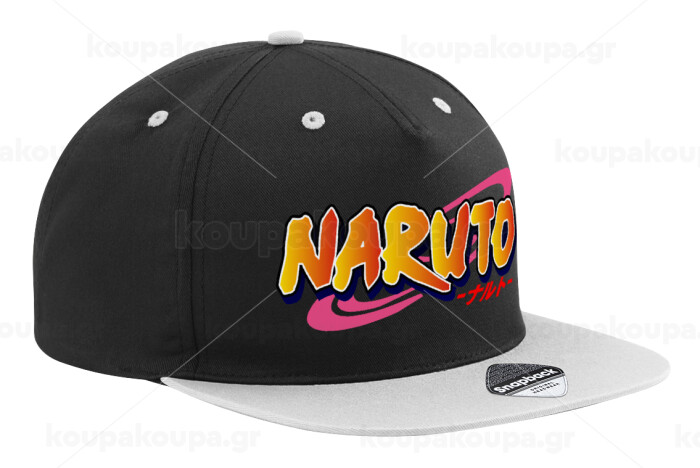 Naruto uzumaki, Adult Flat Snapback Hat Black/Grey, (100% COTTON TWILL, ADULT, UNISEX, ONE SIZE)