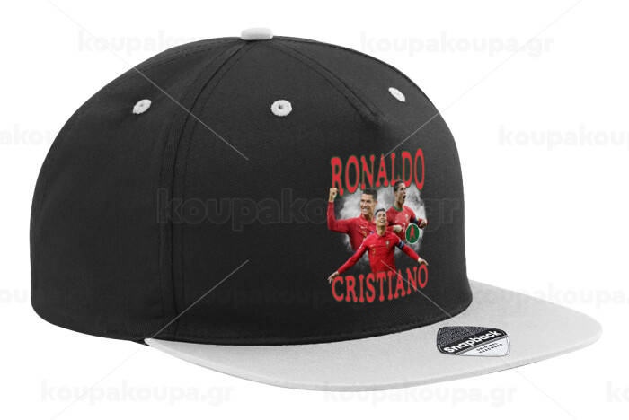 Cristiano Ronaldo, Adult Flat Snapback Hat Black/Grey, (100% COTTON TWILL, ADULT, UNISEX, ONE SIZE)