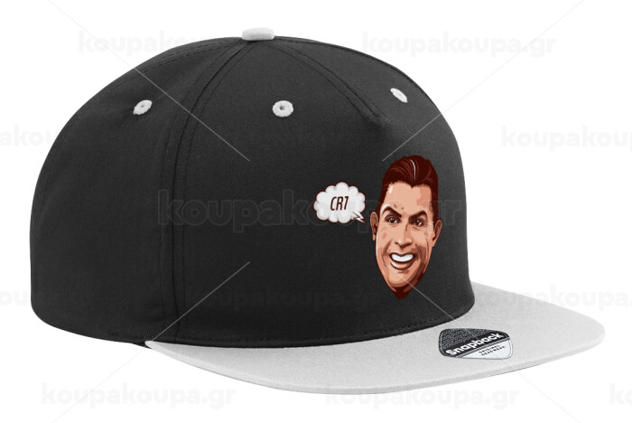 Cristiano Ronaldo, Adult Flat Snapback Hat Black/Grey, (100% COTTON TWILL, ADULT, UNISEX, ONE SIZE)