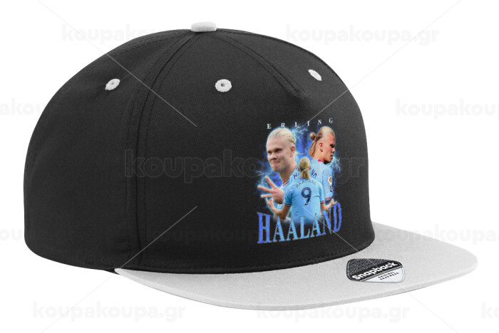 Erling Haaland, Adult Flat Snapback Hat Black/Grey, (100% COTTON TWILL, ADULT, UNISEX, ONE SIZE)
