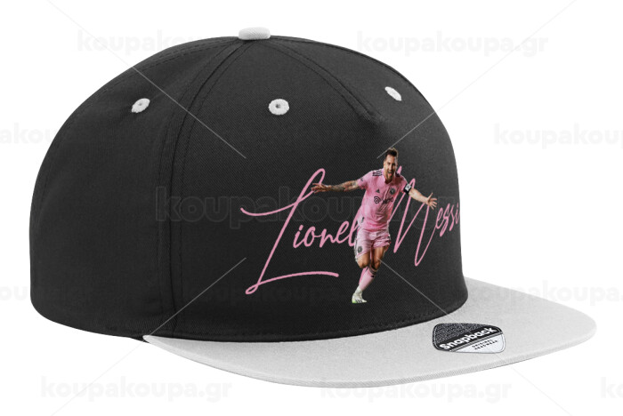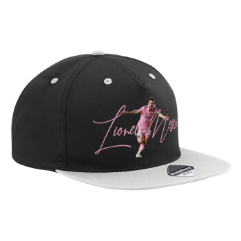 Lionel Messi inter miami jersey, Adult Flat Snapback Hat Black/Grey, (100% COTTON TWILL, ADULT, UNISEX, ONE SIZE)