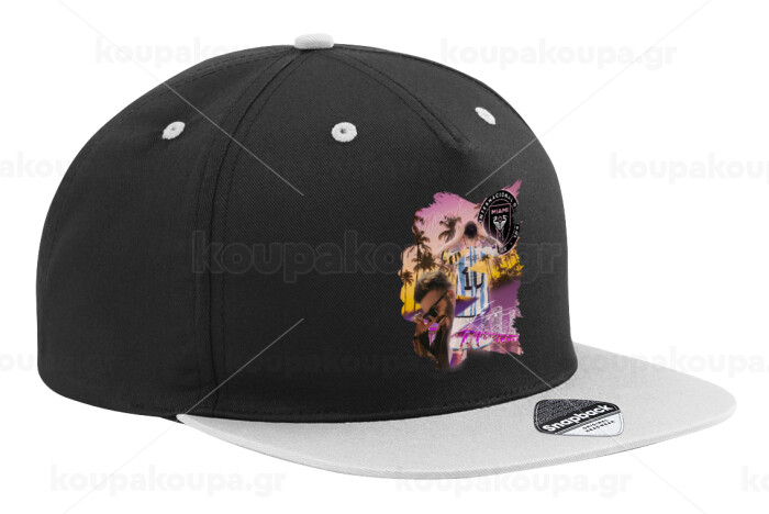 Lionel Messi Miami, Adult Flat Snapback Hat Black/Grey, (100% COTTON TWILL, ADULT, UNISEX, ONE SIZE)