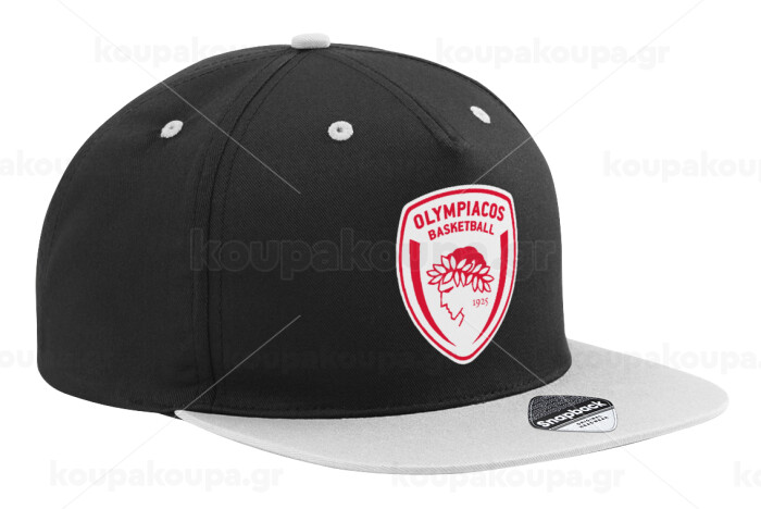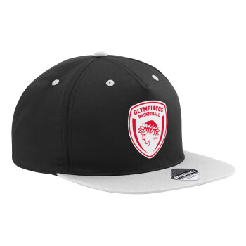 Olympiacos B.C., Adult Flat Snapback Hat Black/Grey, (100% COTTON TWILL, ADULT, UNISEX, ONE SIZE)