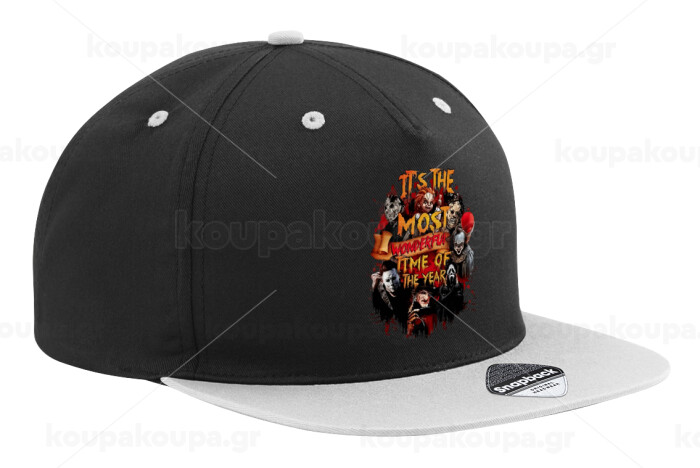 Halloween it's most wonderful time of the year, Adult Flat Snapback Hat Black/Grey, (100% COTTON TWILL, ADULT, UNISEX, ONE SIZE)