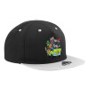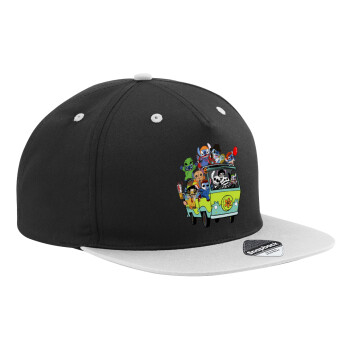 Stitch Halloween scooby car, Adult Flat Snapback Hat Black/Grey, (100% COTTON TWILL, ADULT, UNISEX, ONE SIZE)
