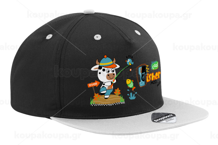 Kids Fisherman, Adult Flat Snapback Hat Black/Grey, (100% COTTON TWILL, ADULT, UNISEX, ONE SIZE)
