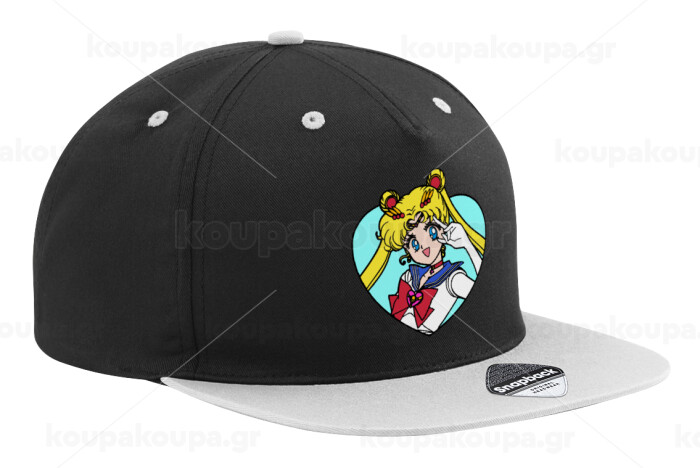 Sailor Moon star, Adult Flat Snapback Hat Black/Grey, (100% COTTON TWILL, ADULT, UNISEX, ONE SIZE)