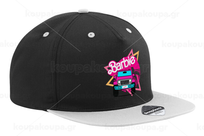 Barbie car, Adult Flat Snapback Hat Black/Grey, (100% COTTON TWILL, ADULT, UNISEX, ONE SIZE)