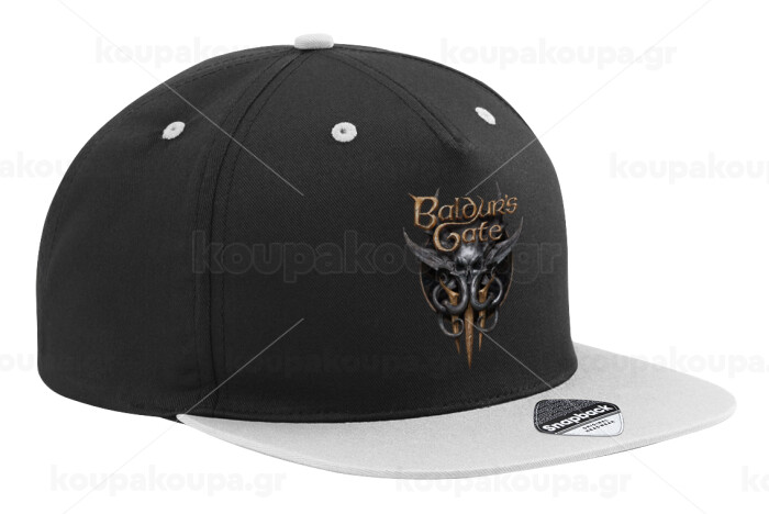 Baldur's Gate, Adult Flat Snapback Hat Black/Grey, (100% COTTON TWILL, ADULT, UNISEX, ONE SIZE)