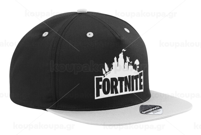 Fortnite, Adult Flat Snapback Hat Black/Grey, (100% COTTON TWILL, ADULT, UNISEX, ONE SIZE)