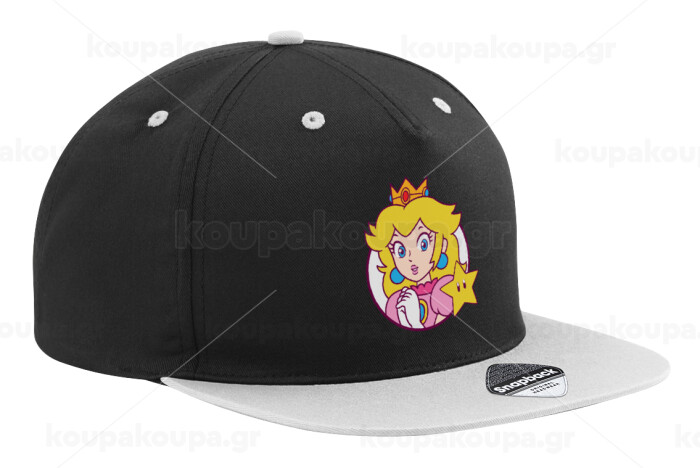 Princess Peach, Adult Flat Snapback Hat Black/Grey, (100% COTTON TWILL, ADULT, UNISEX, ONE SIZE)