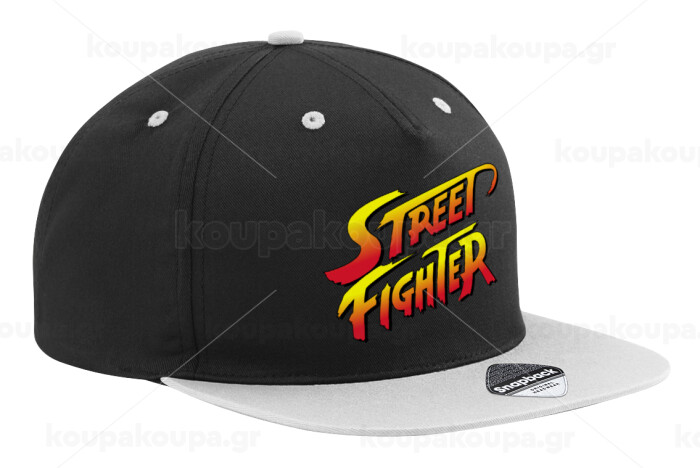 Street fighter, Adult Flat Snapback Hat Black/Grey, (100% COTTON TWILL, ADULT, UNISEX, ONE SIZE)
