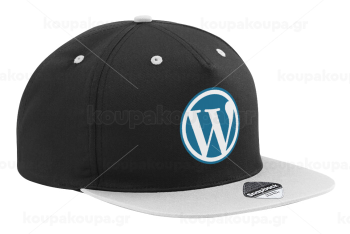 Wordpress, Adult Flat Snapback Hat Black/Grey, (100% COTTON TWILL, ADULT, UNISEX, ONE SIZE)