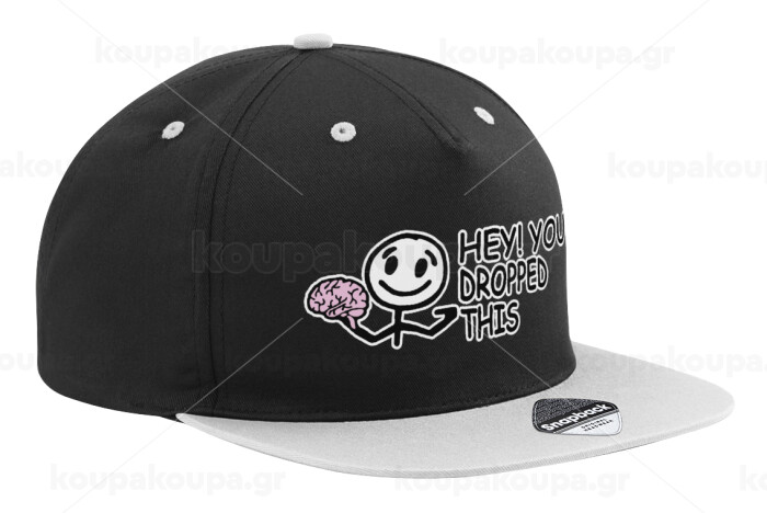 Hey! You dropped this, Adult Flat Snapback Hat Black/Grey, (100% COTTON TWILL, ADULT, UNISEX, ONE SIZE)