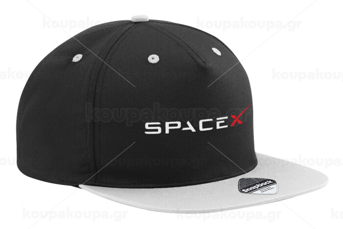 Space X, Adult Flat Snapback Hat Black/Grey, (100% COTTON TWILL, ADULT, UNISEX, ONE SIZE)