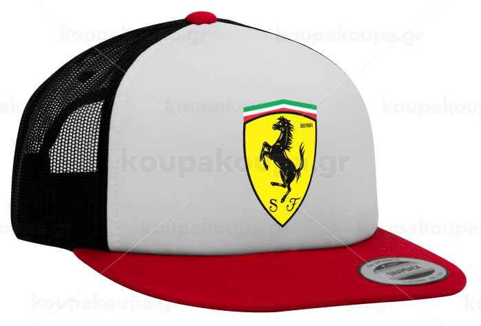 Ferrari, Adult Foam Flat Snapback with Mesh Red-White-Black (POLYESTER, ADULT, UNISEX, ONE SIZE)